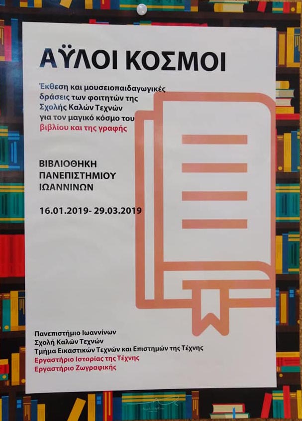 Η Σχολή Καλών Τεχνών και η Βιβλιοθήκη του Πανεπιστημίου Ιωαννίνων, πραγματοποιούν εκδήλωση παρουσίασης της έκθεσης «Άυλοι Κόσμοι – Βιβλίο και Βιβλιοθήκες».