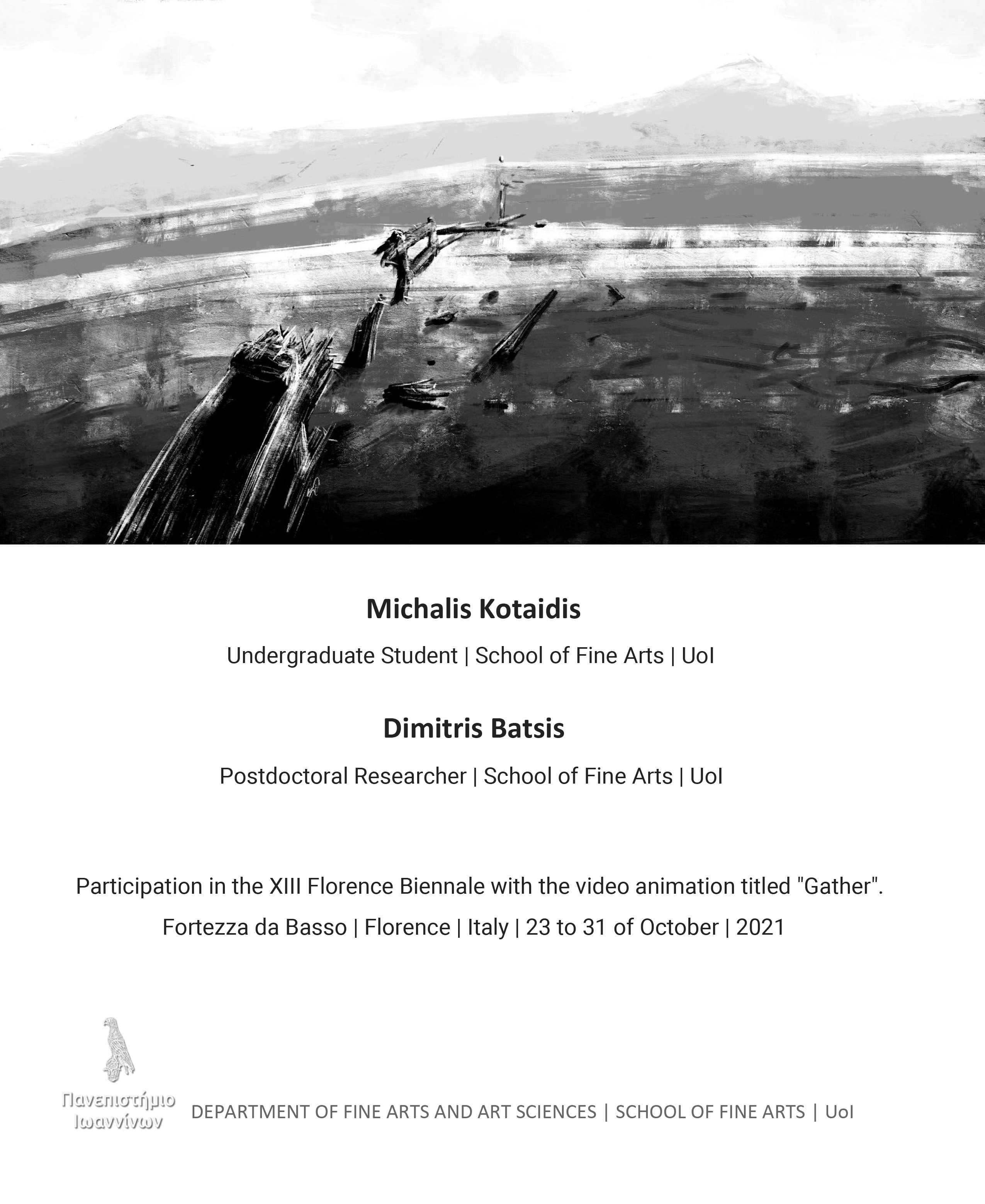XIII Florence Biennale \\ GATHER This event has expired Start Time 00:00 24 Ιανουαρίου 2021 Finish Time 00:00 24 Ιανουαρίου 2021 Event Participants Μπήτσικας Ξενοφών Ζωγραφική Share: